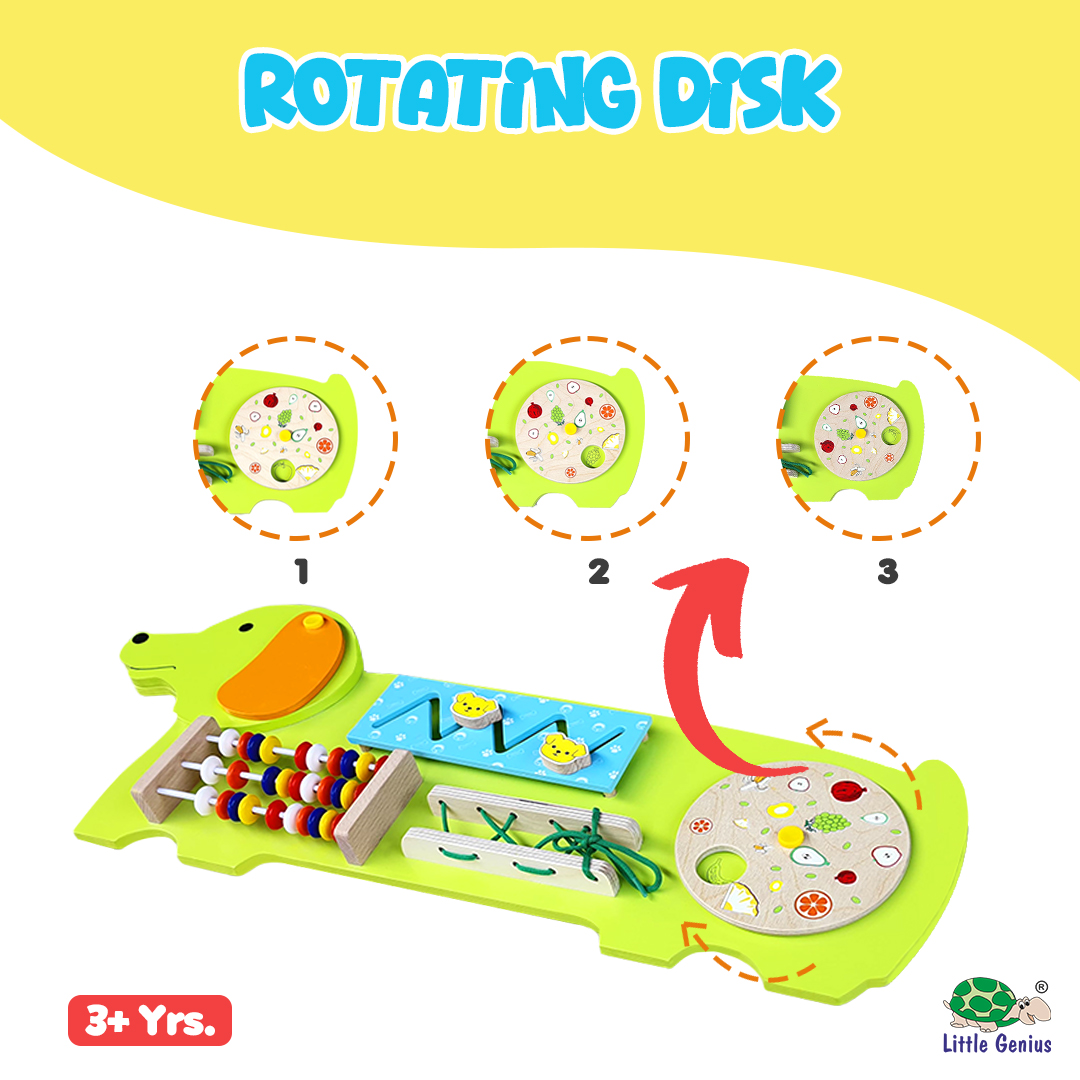 - MULTIPLE ACTIVITIES: Includes colourful abacus, pattern matching panel, and rotating disc games to engage young minds